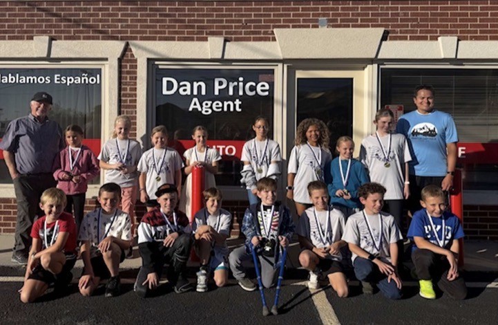 Pictured are some of the winners of the 17th Annual Beehive Mile, which was held Oct. 10, 2025. The top five 4th and 5th graders were awarded medals and all finishers receive a ribbon. Front row Austin Yates, Scott Farley, Hunter Anderson, Max Wiley, Oliver Greenhalgh, Kade Flitton Peter Knight and Jefferson Nelson. Back row Dan Price, Morgan Kotter, Sarah Rees, Lindsey Miller, Taya Schwab,, Ameliz Garcia, Amya Majors, Mikarde Willard, Sydnee Kaminska, and Coach Andrew Miller.